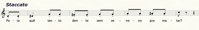 Escutar e reconhecer as diferenças de interpretação em diferentes frases da canção, em particular a articulação das palavras em staccato, notas curtas e sílabas destacadas, e legato, notas ligadas, numa interpretação mais natural.